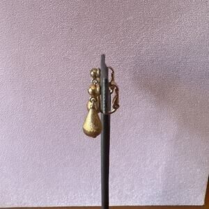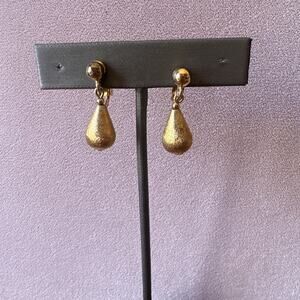 VTG Signed Napier Clip On Earrings Gold Tone Textured Drop Dangle Timeless