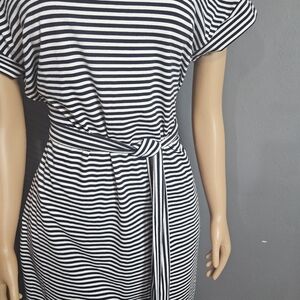 Step out in style with this elegant striped black and white midi dress. Perfect for any occasion, its classic design ensures a timeless look.