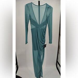 NWT - Lulus Alluring Silhouette Light Blue Sheer Mesh Backless Maxi Dress