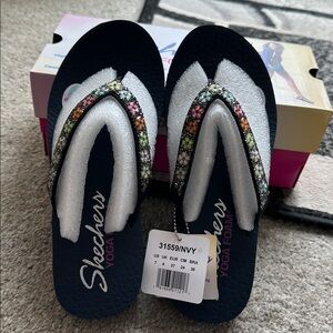 Skechers Daisy Delight yoga foam embellished sandals new in box with tags size 7. Navy blue