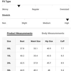 Very stretchy and runs a little bit big. The 3X would easily fit someone who wears a size 20.