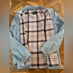 Adorable comfy fleece lined light denim shacket. So cute with leggings! Size M