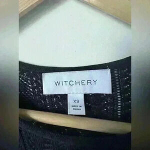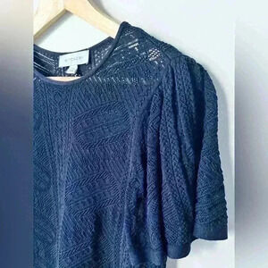Witchery Women’s Navy Blue Textured Art to Wear Puff Sleeve Top Extra Small