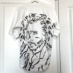 Zara graphic tee, Van Gogh print on back and Mona Lisa print on front. Size S. Back is woven, front is knit. Subtle high low design hem. Like new condition. Length 23” front, chest 24”, sleeve opening 7.75”, back length 26.5”.