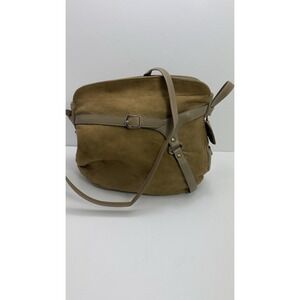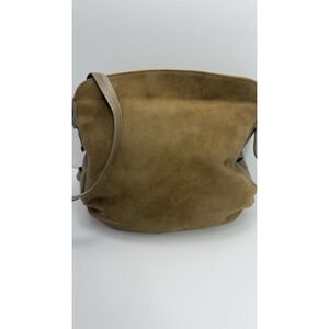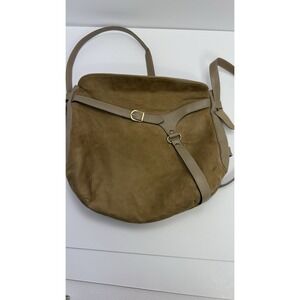 Vtg Dimensions Suede Boho Shoulder Bag Brown Leather Trim Minimalist 80s 90s USA