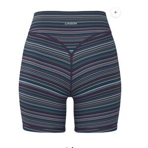 LIAISON THE LABEL BRIDGE SHORT - TEAL & PLUM STRIPES MEDIUM