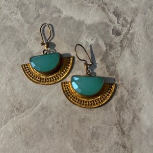 Add a touch of elegance with these stunning gold and turquoise earrings.