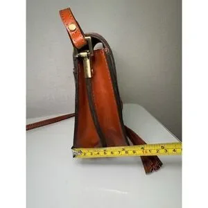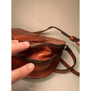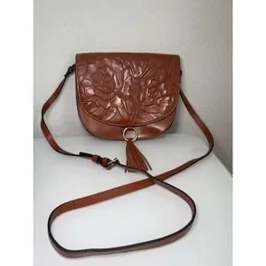 Patricia Nash Brinlee Leather Saddle Crossbody Bag Tassel Brown Cinnamon Tooled