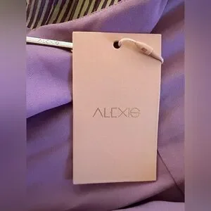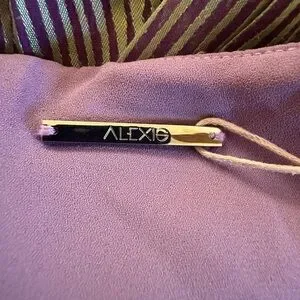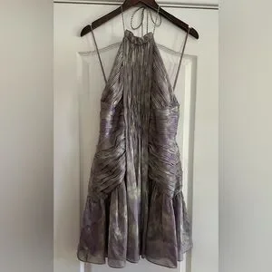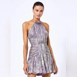 Chic halter mini dress by Alexis. Features a stunning purple and green design. Perfect for stylish outings.