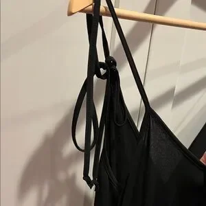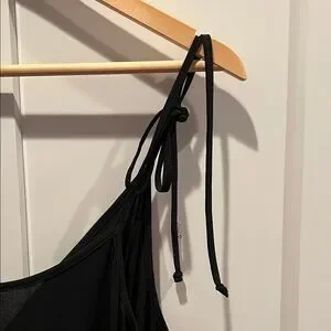 Chic black jumpsuit with adjustable straps and elastic cuffs/joggers . Perfect for versatile styling.