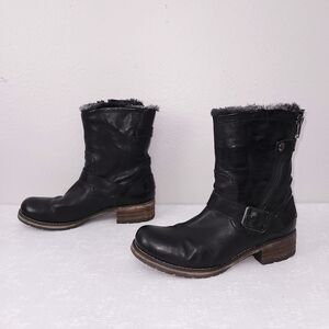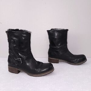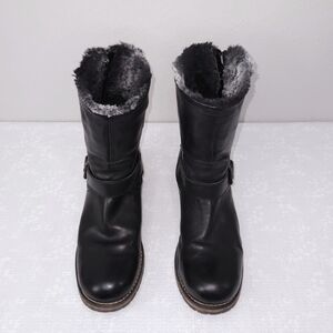 CLARKS Majorca Sun Moto Boots Black Leather Faux Fur Lined US 10