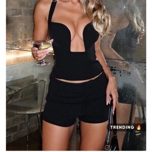 Stylish black halter tank top. Features a deep neckline. Perfect for a night out. Zipper back to do up. Just bought , never worn tags still- ordered wrong size