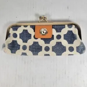 Spartina 449 Leather Linen Moroccan Mosaic Patterned Nautical Coin Purse