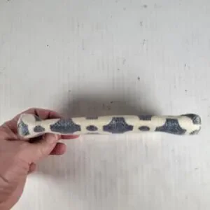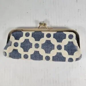 Sturdy case with kisslock closure features Spartina signature linen exterior and Mermaid charm as exterior accent.