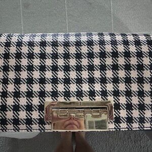 RARE Zac Posen Black /White Gingham Straw and Leather Earthette Clutch