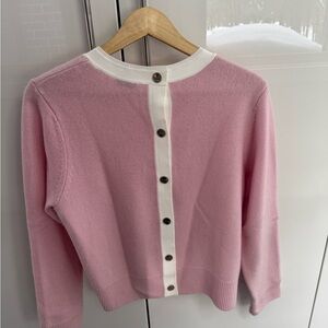 Beautiful Sandro wool sweater in soft pink. Features cream trim and silver button accents. Ladies L, Sandro size 3.