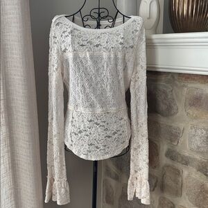 Free People Lace Bell Sleeve Sheer Top