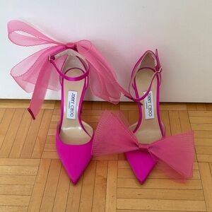 Jimmy Choo Fuchsia Silk Pumps with Tulle Bows