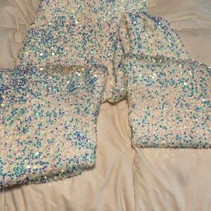 Dazzling sequin jumpsuit. Halter neckline. Perfect for parties.