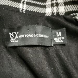 Chic and versatile black & white plaid wide-leg pantsuit by New York & Company, designed with a flattering sleeveless silhouette and lightly padded shoulders for added structure and a polished, tailored look.
