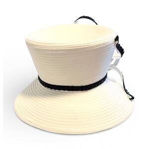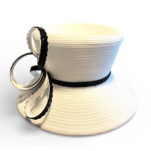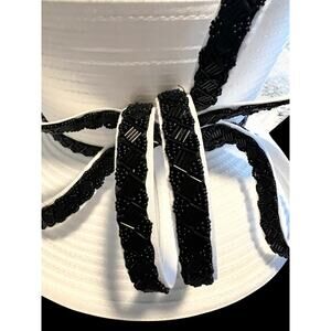 Rare Vintage Unique Kentucky Derby Church Brim Hat Clean White Beaded Black Bow