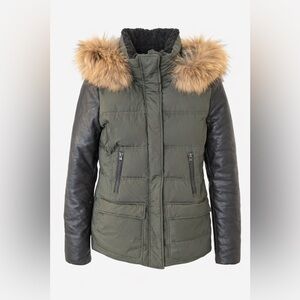 Mackage Olive Fur Hood Leather Sleeve Down Jacket. Size XS
