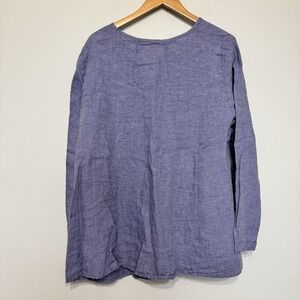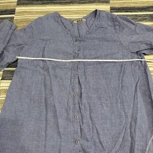 FLAX Shirt Women's 1G 1X Blue Linen Button Front Tunic Top Long Sleeve Lagenlook