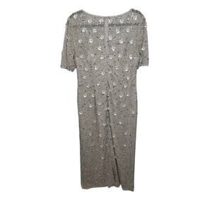 Adrianna Papell Beaded Floral Evening Gown in Marble, Size 14