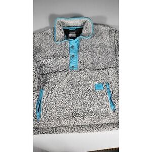 Justice Sherpa Pullover Cozy Quarter Snap Button Up Gray Blue Girls 12