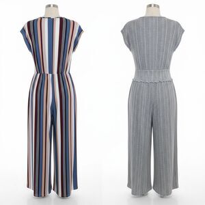Women’s Jumpsuit Bundle Size M Stripe & Gray Wrap Style Sleeveless 2 Piece Lot