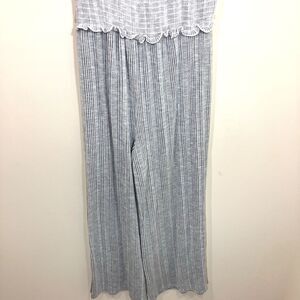 Womens Jumpsuit Bundle Size M Stripe & Gray Wrap Style Sleeveless 2 Piece Lot