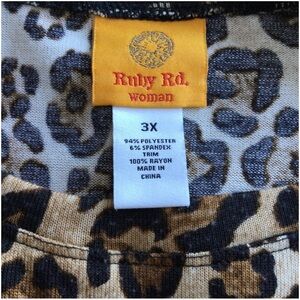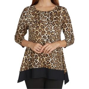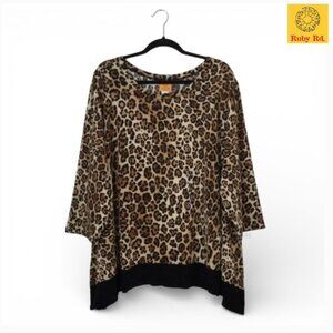 RUBY RD 3/4 Sleeve Cheetah Print Handkerchief Sharkbite Tunic Top 3X