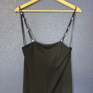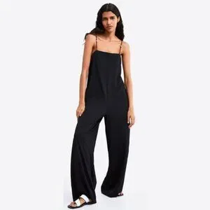 Zara Wide Leg Black Jumpsuit with Silver Beaded Straps | Size Small