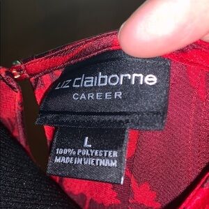 Liz Claiborne career red floral tie-front blouse!
