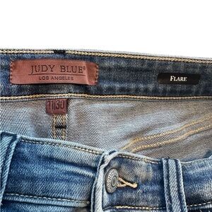 Judy Blue Flare Jeans High Rise Front Seam Raw Hem Boho Denim 30x33 Sz 11 Spring
