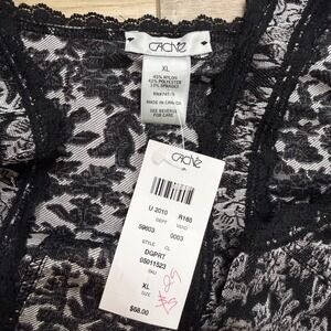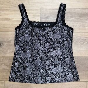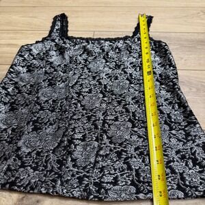 Vintage Cache Silver Black Floral Brocade Lace Trim Whimsigoth Top Tank XL NWT