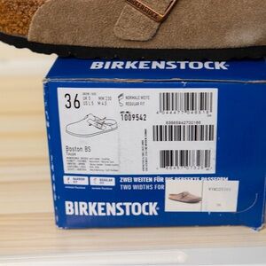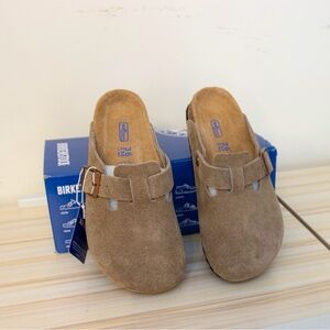 Brand‑new Birkenstock Boston clogs in taupe suede. Soft footbed, adjustable buckle strap, and comfy cork sole. Size EU 36 / US 5, never worn, comes with the box.