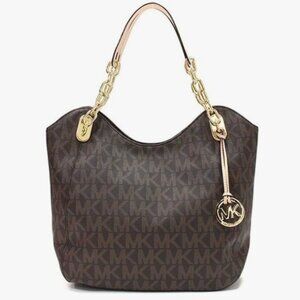EUC Michael Kors Lilly Brown Signature Monogram Chain Tote Bag