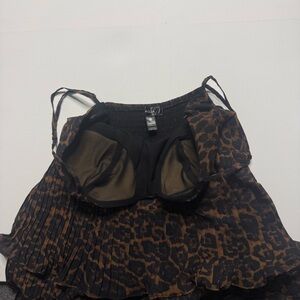 AQUA Leopard Print Pleated Tiered Smocked Midi Dress Animal Print Spring Summer