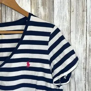 Polo Ralph Lauren Navy & White Stripe Women’s V Neck Tee XL