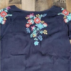 Johnny Was XXL Blue Cupra Rayon Embroidered Boho Blouse NWT Floral Top