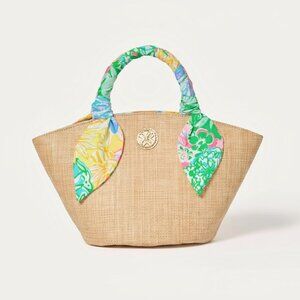 Lilly Pulitzer Maya Straw Tote Bag NWT $168 Raffia Scarf Handle