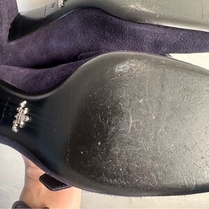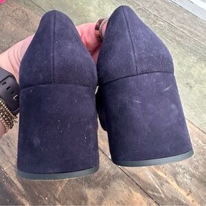 A few light marks on the suede as shown, mainly on the heel, but should buff out a bit with a suede brush.