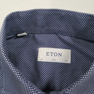 Eton Men Dress Shirt 39 15.5 Slim Fit Blue Polka Dot Cotton