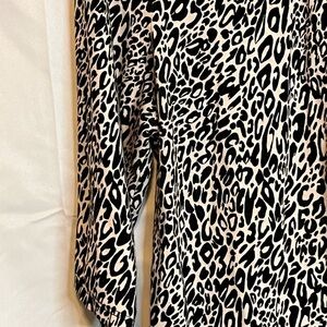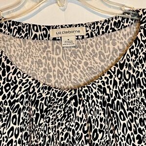 LIZ CLAIBORNE, Quarter Sleeve White/Black, Animal Print, Round Neck, Blouse, Size M