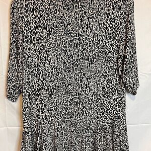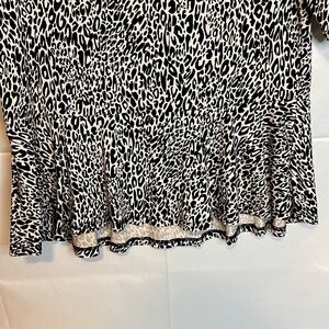 LIZ CLAIBORNE, Quarter Sleeve White/Black Animal Print Round Neck, Blouse, M