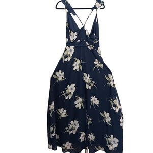 LULUS All Mine Navy Blue Floral Print High-Low Wrap Dress size M. High-low skirt with front slit. Resort Vacation