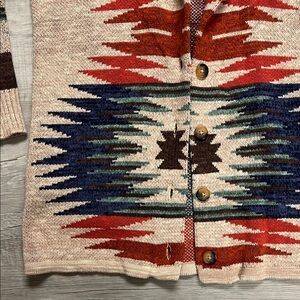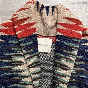Lucky Brand Aztec Patterned Shawl Collar Sweater XS