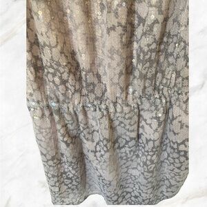 Bit of a leopard print look with a grey and light pink sheen. Worn this to an amazing party and got so many compliments.