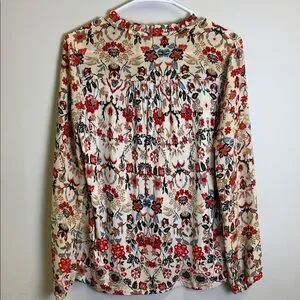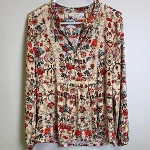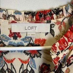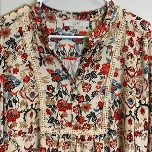 LOFT Floral Blouse with Red, Blue, and Cream Accents